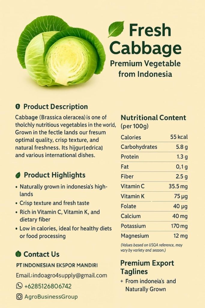 Premium Vegetable from Indonesia Product Description Cabbage (Brassica oleracea) is one of the most widely…