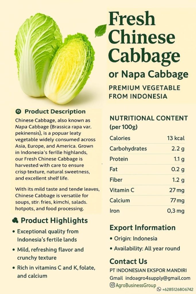Premium Vegetable from Indonesia Product Description Chinese Cabbage, also known as Napa Cabbage (Brassica rapa…