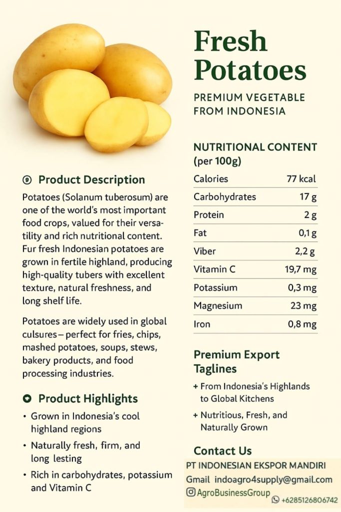 Premium Vegetable from Indonesia Product Description Potatoes (Solanum tuberosum) are one of the world’s most…