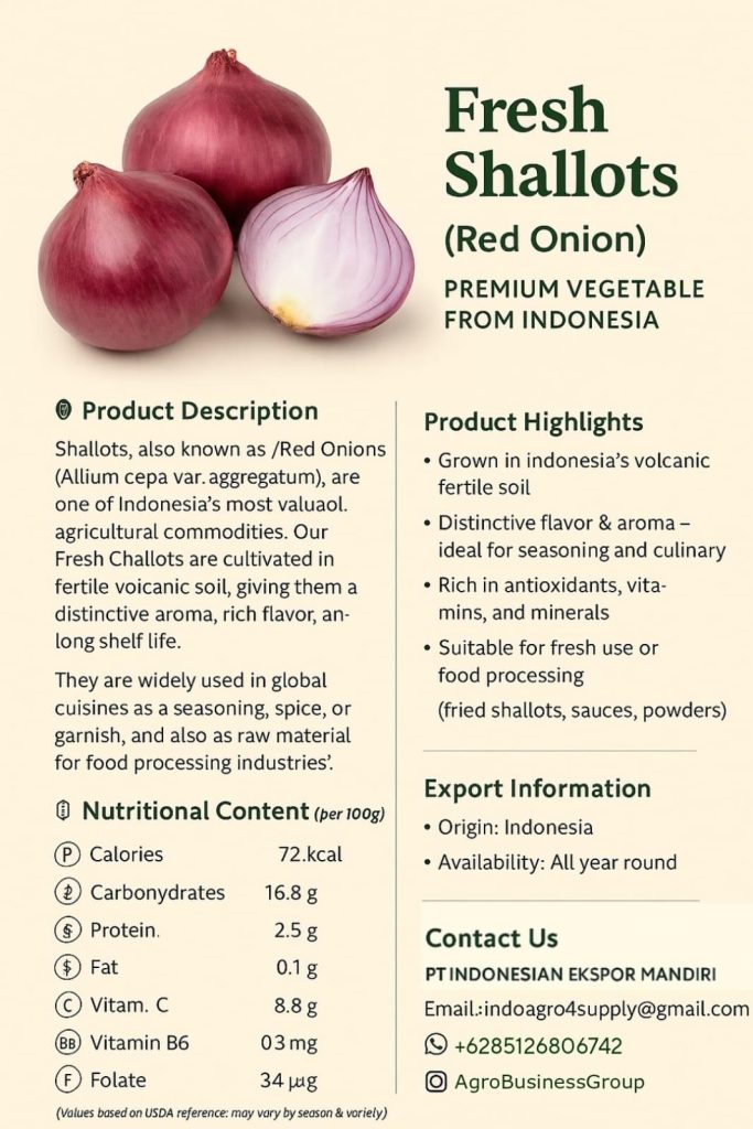 Premium Vegetable from Indonesia Product Description Shallots, also known as Red Onions (Allium cepa var….